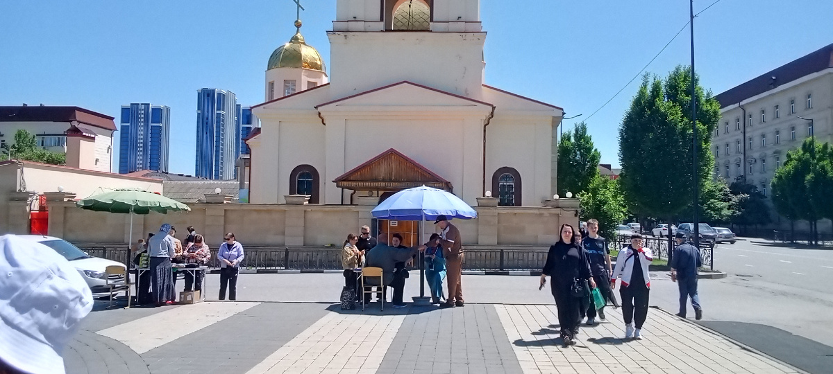 Храм Архангела Михаила один из достопримечательностей города Грозный. Храм старинный, но его восстановили по федеральной программе не так давно. И период строительства храма - это 1868 год. Строили его на деньги армянских и русских купцов. Казаки здесь еще в период до революции, в период гражданской войны в советского времени проживало очень много казаков. И у нас на Кавказе, на границе с Чечнёй, Ингушетией, Северной Осетией, Кабардино-Балкарией всегда были казачьи станицы и есть по сегодняшний день. Единственное, их нет уже в Ингушетии, их нет уже в Чечне, а в Северной Осетии, в Кабардино-Балкарии они по сегодняшний день есть. И, конечно, храм весьма интересен. Храм, также, когда его восстановили, в 2018 году пытались взорвать, пытались организовать теракт. По сегодняшний день он является памятником архитектуры. По сегодняшний день просто так в храм просто так не зайти,он охраняется военными, но уже русскими пограничники, они так же пропускают через рамочку, так же ну