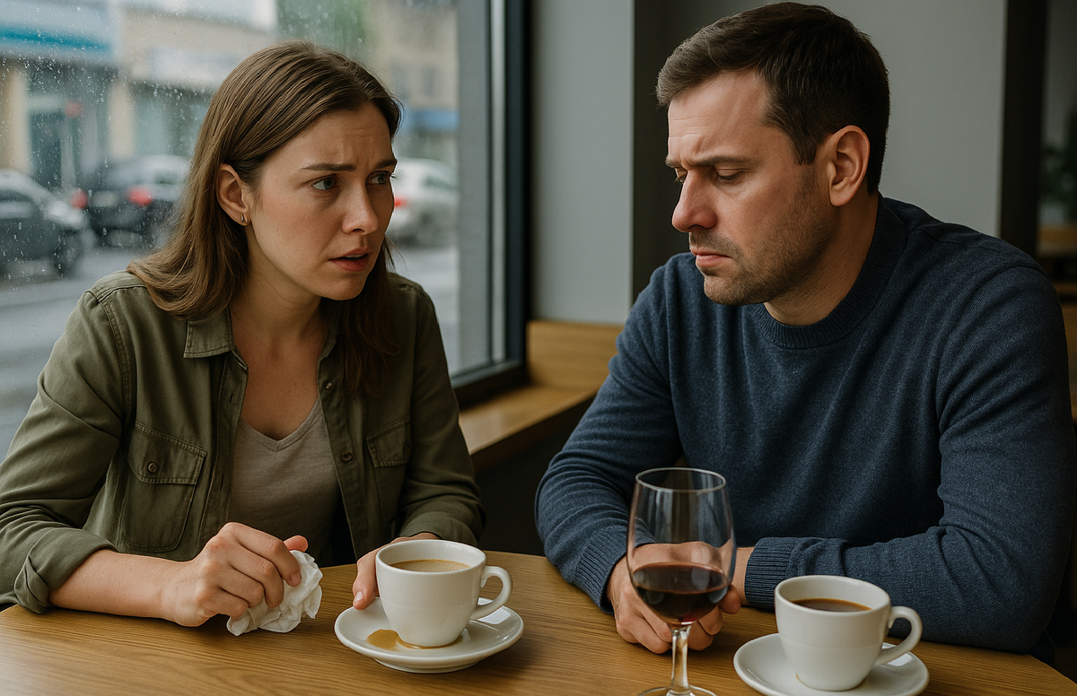 Сергей сидел напротив, даже не пошевелившись, чтобы помочь. Просто глазел, будто это кино какое-то. Кафешка «У Полины», где они обычно встречались по средам после работы, сегодня была почти пустая. Пара студентов в дальнем углу, какой-то очкарик с ноутбуком у окна да старушка с пирожным — никому дела не было до их разговора.