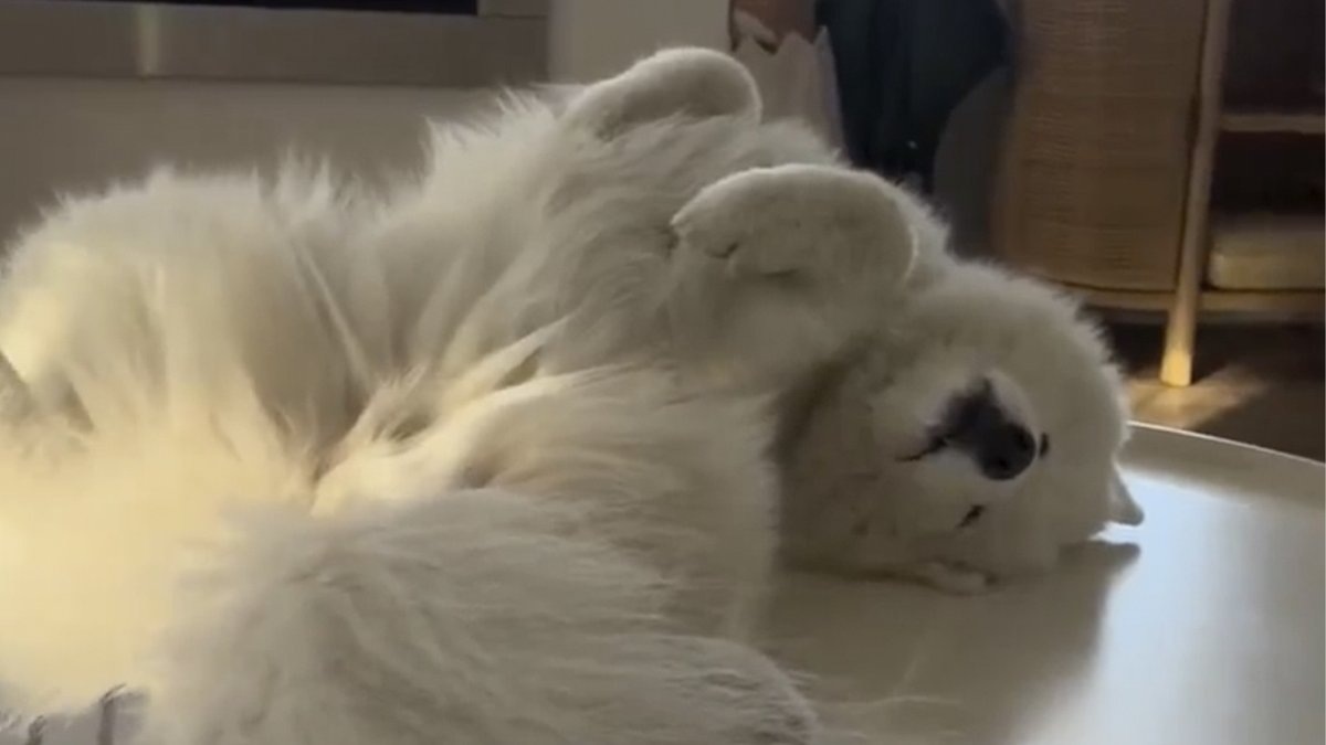 Самоед по кличке Нуби точно знает толк в комфорте. Пока другие питомцы лежат на лежанках или ковриках, этот питомец выбрал более креативное место — кофейный столик. Похоже, так пес решил обозначить, что он «самая сладкая булочка» в доме. Нуби с таким удовольствием разлегся на столе, будто решил заявить, что главное блюдо на сегодняшний вечер — это он. Хозяйка отметила, что на самом деле пес ведет себя так лишь тогда, когда ему не хватает внимания. Иногда собакам, как и людям, хочется больше любви, чем обычно. Но как проявить теплые чувства к четвероногому другу так, чтобы он это понял? Все очень просто! Прочитайте нашу статью, чтобы узнать, как сказать собаке «я тебя люблю».