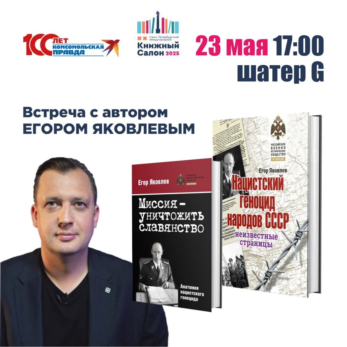 23 мая в 17:00 на Книжном салоне состоится презентация книг «Миссия - уничтожить славянство» и «Нацистский геноцид народов СССР», которые вышли в издательстве «Комсомольская правда».