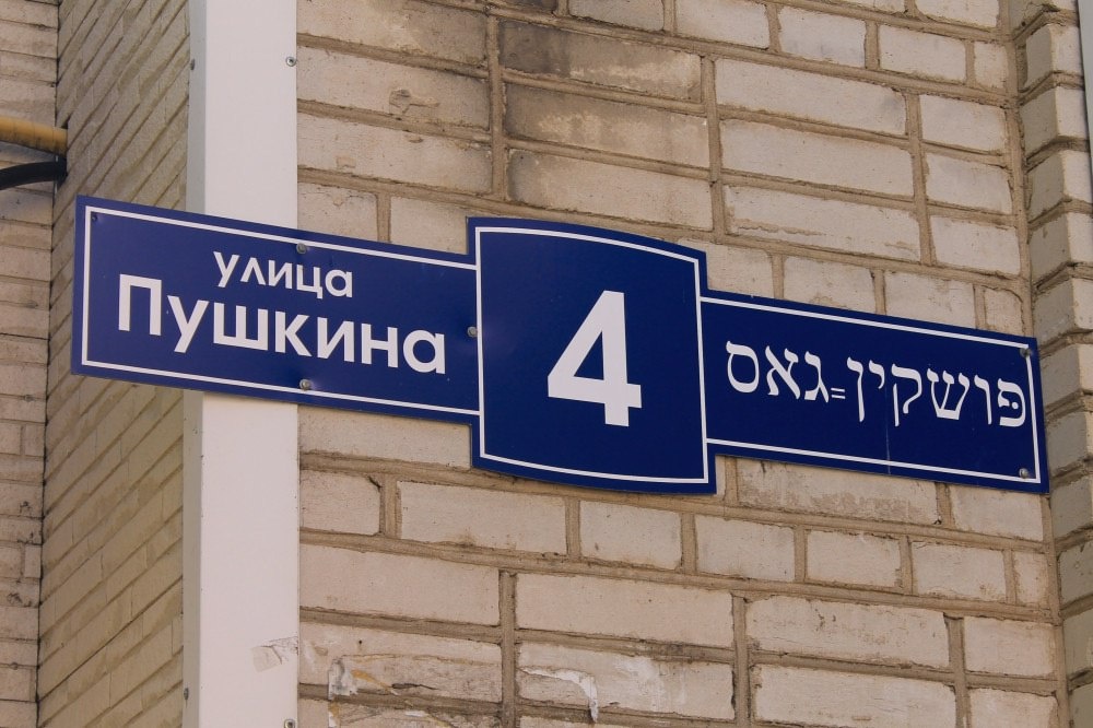 Новенькие уличные указатели в городе #Биробиджан Едва ли биробиджанцы могут прочитать ее правую часть — по переписи 2010 года в городе насчитывается меньше ста говорящих на идиш. Впрочем, дело не только в обрусении малочисленной местной диаспоры, но и в печальной судьбе этого языка в целом — Холокост не оставил ему никаких шансов. Новое еврейское государство сделало ставку на возрождаемый иврит, он же сегодня пользуется спросом и у молодёжи, которая не видит смысла учить умирающий язык предков. ЕАО на сегодня — единственная в мире административная единица с идиш в качестве официального языка. В 20-е - 30-е годы он наряду с польским, белорусским и русским использовался в делопроизводстве Белорусской ССР.