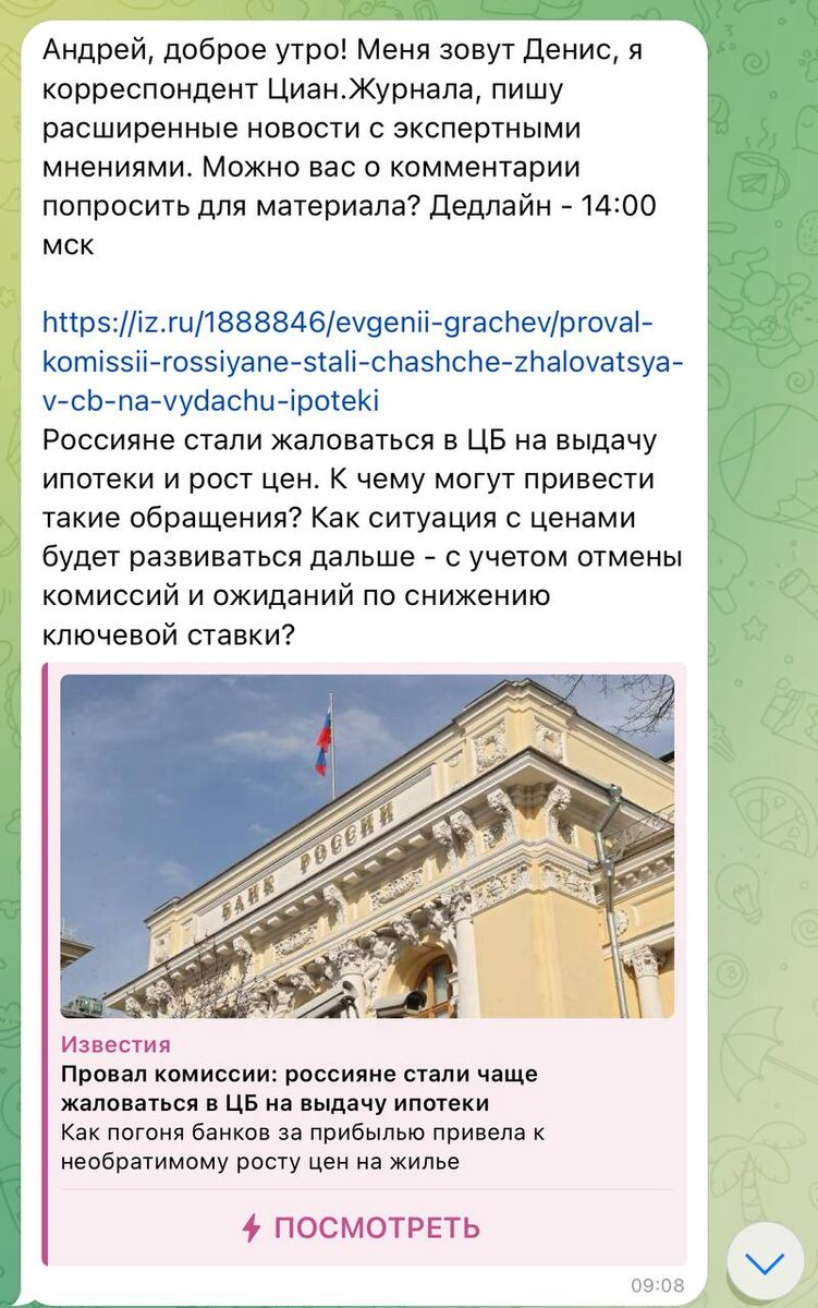 ЦИАН написал. Пока стоял в пробке — комментировал рынок Сегодня утром по пути на сделку пришло сообщение от редакции ЦИАН: «Нужен ваш экспертный комментарий» ✍️ Казалось бы, ничего нового — за последние годы меня не раз цитировали Forbes, Коммерсант, Известия. Но знаете, с ЦИАН у меня до этого не было поводов поработать. И вот тут что-то щёлкнуло. ЦИАН — это ведь не просто медиа. Это голос отрасли 📡 Тот самый ресурс, где живёт рынок: новостройки, ставки, аналитика. И когда они пишут тебе лично — это не просто «ещё одно интервью». Это сигнал: тебя воспринимают не как исполнителя, а как человека, формирующего контекст. Как эксперта, чьё мнение действительно важно и влияет. Пока стоял в пробке, накидал свои мысли — прямо в заметки 🛣️ И словил важную эмоцию: Становится по-настоящему приятно, когда тебя зовут говорить не из вежливости, а потому что тебе реально есть что сказать ✅ P.S. Если интересно, что я написал, вот ссылка 🔗 @Академия риэлтора