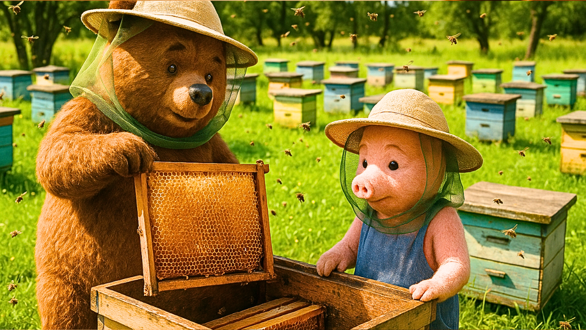 В одном славном, солнечном уголке леса жил-был Винни-Пух — такой же пушистый, добрый и чуть-чуть ленивый, как все знают. Но однажды в его мягкую голову забрался очень важный и даже чуть серьёзный мыслительный штурм: «А что если у меня будет пчелиная пасека?» Вот так чисто по-детски, с искренним желанием попробовать что-то новенькое. Винни был очень рад этой мысли, потому что мед — это любимое лакомство, и если у него будет своя собственная пасека, он сможет есть мед сколько угодно и делиться им с друзьями. — Вот это да! — воскликнул Винни, улыбаясь. — Как здорово, я сделаю настоящий медовый рай! Однако, прежде чем начать великие пчеловодческие дела, Винни решил купить сразу сто ульев. Ну, так, чтобы было на любой случай: и для весны, и для зимы, и для всяких праздников. А Пятачок, его верный на всё готовый друг, с восторженным визгом согласился помогать. И тут началось! — Ну, Винни, ты уверен? Сто ульев — это ведь чуть ли не крышка верхушки деревьев! — воскликнул Пятачок и утирал пот с