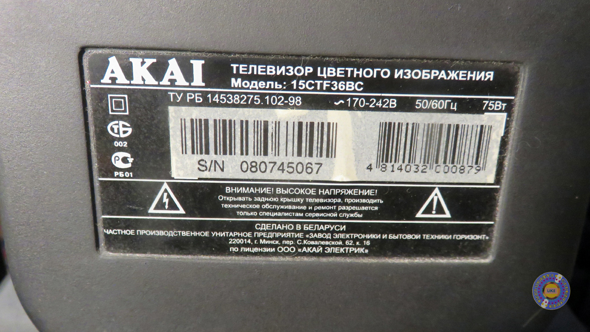 Об аппарате вкратце. Собран в Белоруссии 2004г., плата – Горизонт, кинескоп – LG.... Солянка, в общем!))) Кто он – я не знаю!)) Листаем фоты у Гали.)