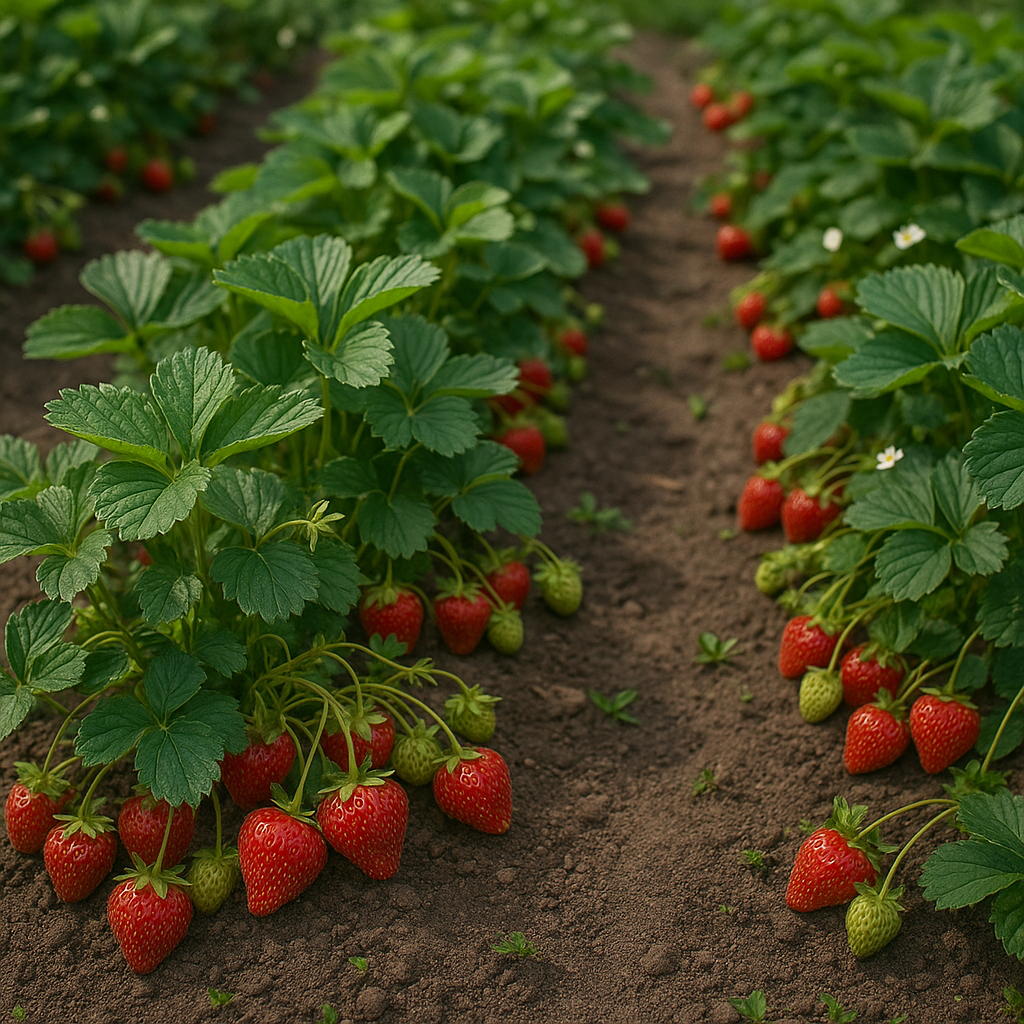 - Важно: Не переувлажняйте — клубника подвержена корневым гнилям.