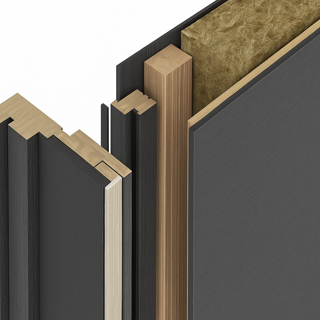 📈 Дверь с массивом или многослойным тяжёлым наполнением — плотно "гасит" шум. Чем тяжелее полотно — тем лучше звуконепроницаемость. Это не миф, а физика. Даже самая дорогая дверь не спасёт, если: