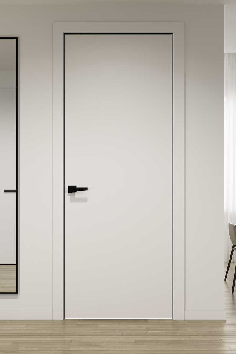 – приглушённые плёнки и шпоны с глубокой фактурой. 📌 В тренде не глянец, а тактильность. Когда рука ложится на ручку — и всё "по кайфу". Дверь-невидимка — абсолютный лидер в минималистичных и дизайнерских интерьерах. – без наличников,