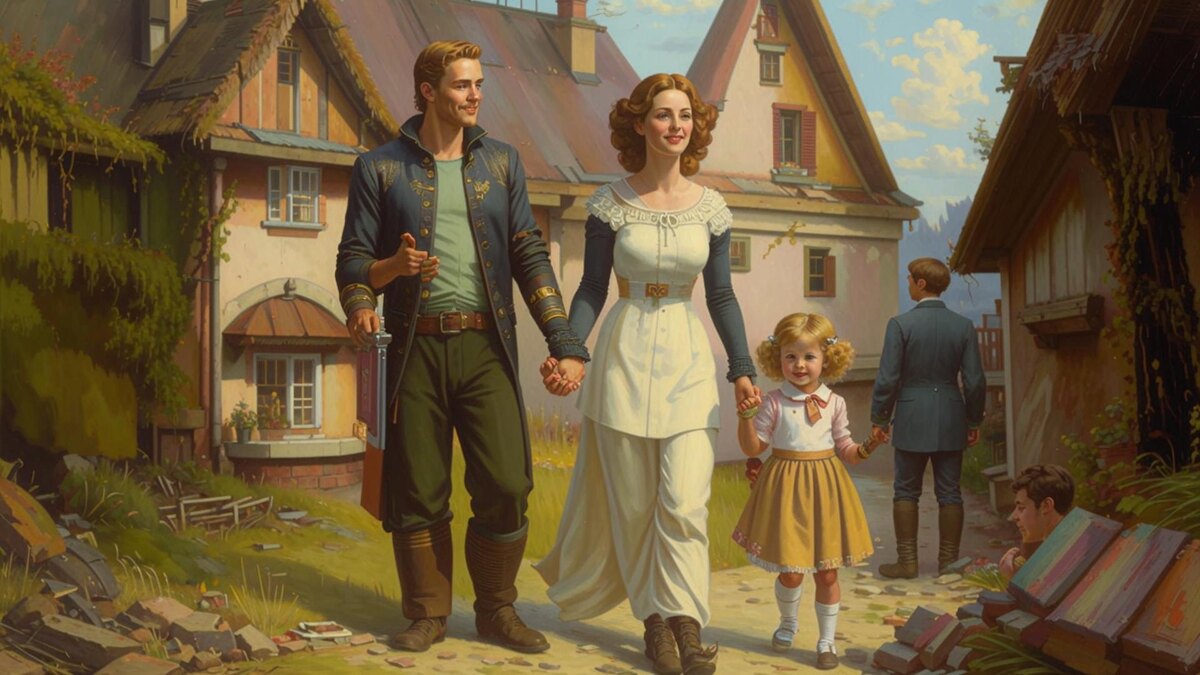 Солнце садилось за шпилями отреставрированной усадьбы, окрашивая витражные окна в багрянец. Макс стоял на лесах, поправляя последний ажурный элемент решётки. Внизу, во дворе, Аня раздавала указания рабочим, а их дочь Лика бегала за бабочками, цепляясь за подол материнского платья.