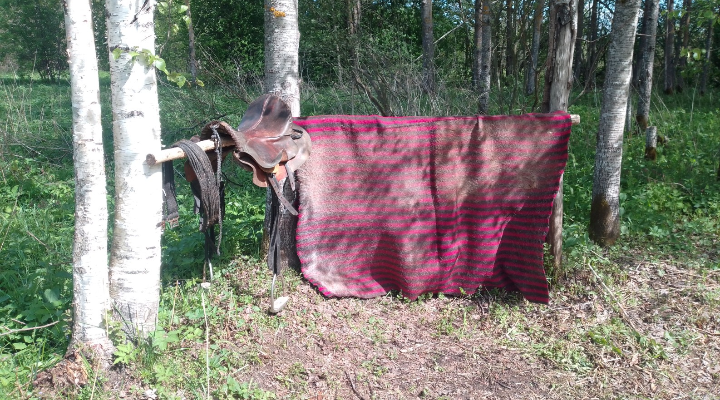 Ох и полило нас с Лакушей вчера вечером! Вообще день был дождливый, но к вечеру вроде бы развиднелось, думаю - самое время сгонять подоить коз. Поседлала Лакушу, приехала к козам, а те отказываются из кустов выходить - высовываются, кричат "отстань!", и заползают обратно. Очень странно - над головой почти чистое синее небо, а они себя ведут, как перед сильным дождём. Выманила всё-таки Бодаунти, подоила, и тут чего-то ветер поднялся. Оборачиваюсь - из-за леса вылезла чёрная туча, как джинн из бутылки, и растёт, быстро заволакивает небо. Бодаунти бросилась прятаться к остальным козам, а я взобралась на нервничающую лошадь, и поскакала к дому, в надежде обогнать дождь, но едва выехала за поворот реки - поняла, что не успею. Через поле двигался широкий столб ливня - белый, как мраморная колонна, непроницаемый. И деваться-то некуда: справа - река, слева - болото, а это атмосферное страшилище несётся прямо навстречу. Думаю - надо тогда поскорее проскочить, подгоняю Лакушу, и мы врезаемся в