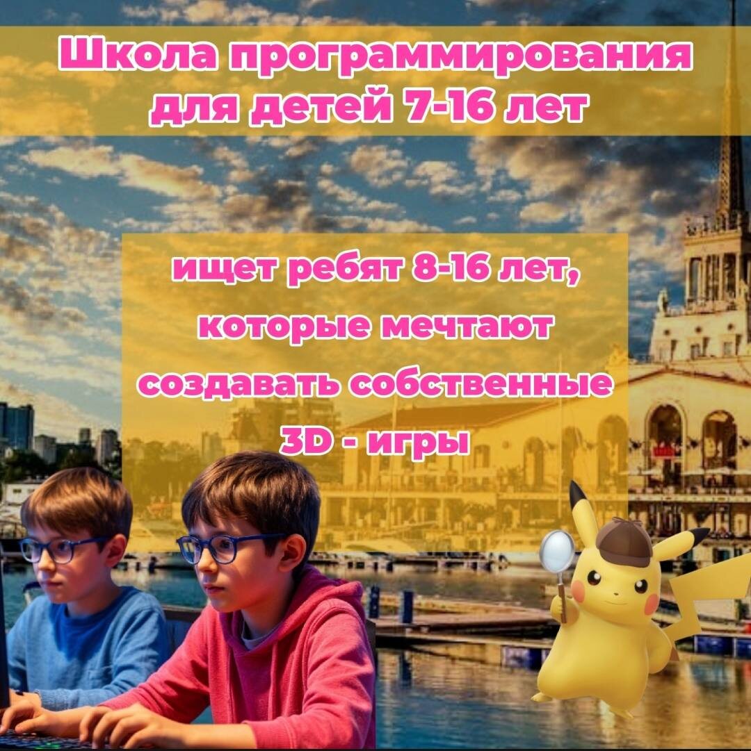 🎮 КАЖДЫЙ ДЕНЬ СЛЫШИТЕ "МАМА, МНЕ СКУЧНО"? У нас есть решение! CODDY — место, где игры создают сами дети! ГОРОДСКОЙ IT-ЛАГЕРЬ открывает набор на 2, 3, 4 и 5 СМЕНЫ! С 16 ИЮНЯ по 8 АВГУСТА 🔥 МЫ ПРЕДЛАГАЕМ ВАМ ПРОБНЫЙ ДЕНЬ В ЛАГЕРЕ - ВСЕГО за 1800 рублей! Погрузите ребенка в настоящую атмосферу разработки и примите решение 🔥 Что получит ваш ребенок: 🚀 Создаст собственную игру и разместит её в интернете; 🚀 Изучит реальные способы заработка в IT; 🚀 Прокачает навыки программирования через увлекательную игру; 🚀 Получит персонажную карточку с системой уровней. 🔥При записи на пробный день вы СТАНОВИТЕСЬ УЧАСТНИКОМ РОЗЫГРЫША смены БЕСПЛАТНО! 🔥 ВЫ МОЖЕТЕ ВЫИГРАТЬ МЕСТО И ПОСЕТИТЬ ЛАГЕРЬ АБСОЛЮТНО БЕСПЛАТНО! В пробный день включено: ☀️ 4 часа увлекательных занятий; ☀️ Изучение 2 крутых IT-направлений; ☀️ Веселые игры, активности и перекус! Не упустите шанс! Количество мест ограничено! 📲ОСТАВЛЯЙТЕ ЗАЯВКУ https://mrqz.me/letosochi24 📞 ИЛИ ЗВОНИТЕ +7 (909) 466-77-44 P.S. Первая