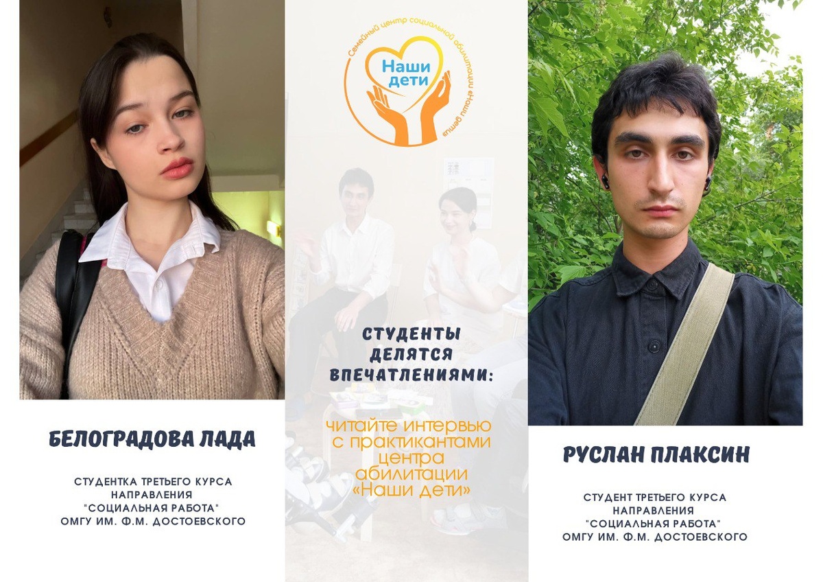 В течение месяца в нашем центре проходили практику двое студентов третьего курса направления «Социальная работа» ОмГУ им. Ф.М. Достоевского. Ребята погрузились в реальную среду работы с детьми с особыми потребностями, приобрели бесценный опыт и готовы поделиться своими впечатлениями. 💛Желаем ребятам дальнейших успехов и достижений в выбранной профессии!