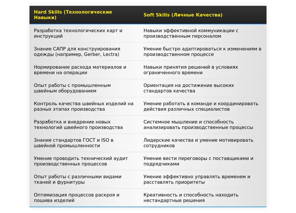 Для начинающих технологов швейного производства важно подчеркнуть свой потенциал, знания, полученные в университете, и стремление к развитию.