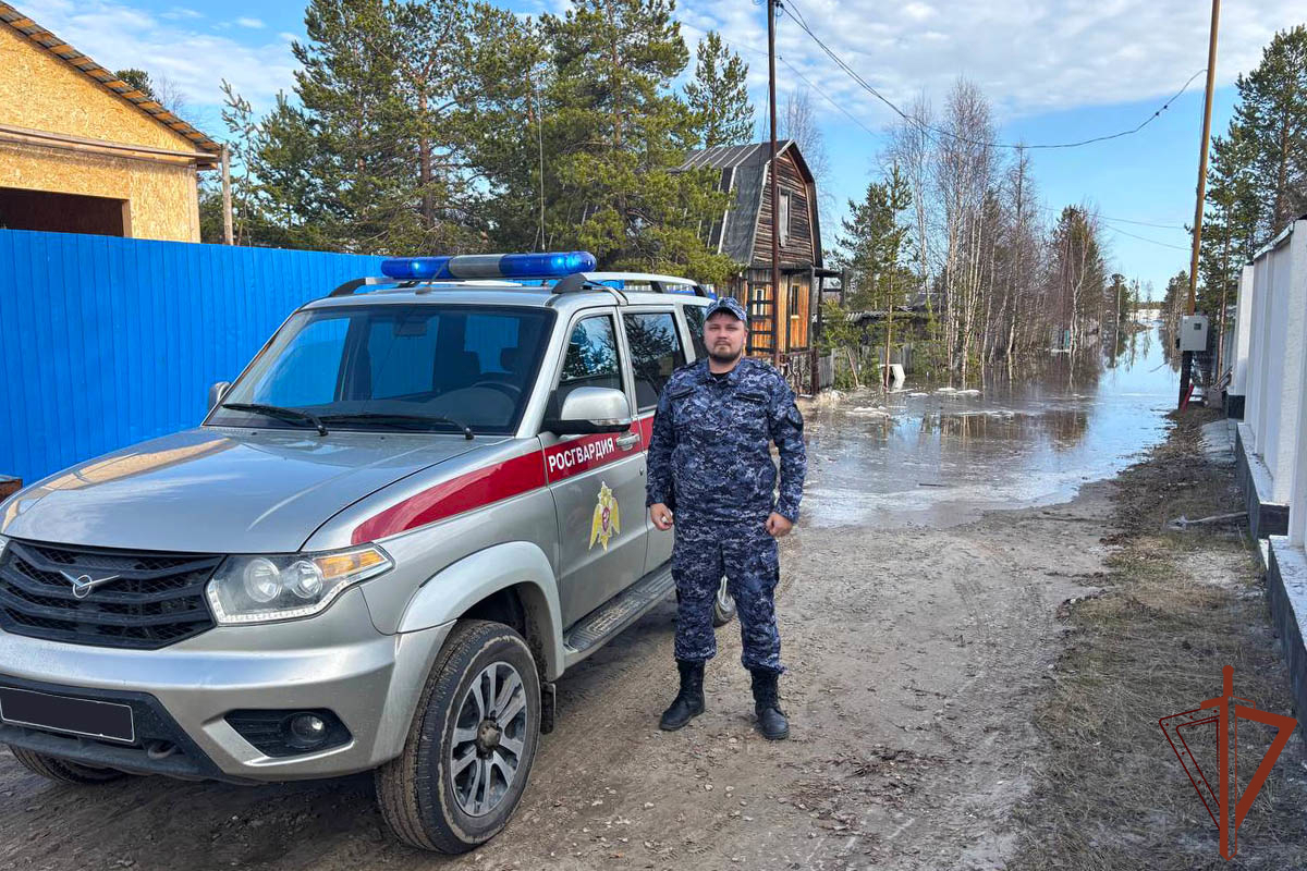 В городе Тарко-Сале Пуровского района Ямало-ненецкого автономного округа сотрудники вневедомственной охраны регионального управления Росгвардии проводят комплекс мероприятий по обеспечению правопорядка в период весеннего паводка. В результате образовавшегося ледяного затора из берегов вышла река Пякупур, прорвав насыпную дамбу. Вода подступила к жилым домам в районе Дальних дач и постоянно пребывает. В городе объявлен режим повышенной готовности. Сотрудники вневедомственной охраны Росгвардии остаются на месте происшествия, обеспечивая охрану общественного порядка и сохранность имущества. Экипажи Росгвардии ориентированы на взаимодействие со спасателями МЧС России. Правоохранители оказывают содействие экстренным службам в эвакуации населения в связи с риском подтопления домов.