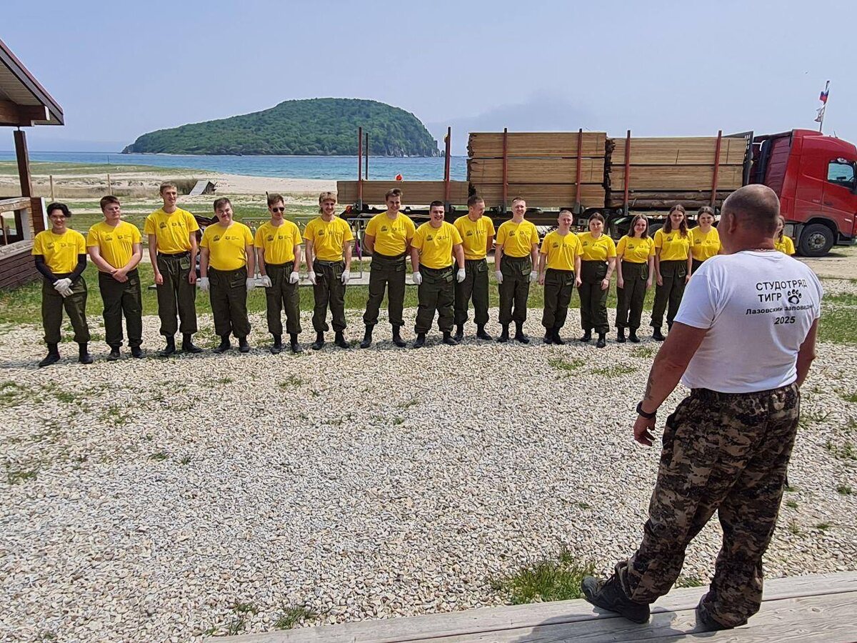 В Лазовском заповеднике в Приморском крае открылась юбилейная смена проекта «Студенческий отряд «Тигр». Парни и девушки со всей России, прошедшие отбор в проект, на ближайшие шесть недель станут частью команды заповедника и будут готовить особо охраняемую природную территорию к приему экологических туристов. В десятой смене в Лазовском заповеднике участвуют 19 студентов из 10 российских ВУЗов. Это университеты и академии из Благовещенска, Владивостока, Воронежа, Донецка, Кемерово, Москвы, Нижнего Новгорода, Улан-Удэ, Уссурийска и Хабаровска. Какие работы предстоят: 🔨 На территории комплекса экологического туризма «Кордон «Остров Петрова» установят дополнительные фотозоны, проведут «техобслуживание» мостиков через ручьи, высадку зеленых насаждений и выкашивание территории, обновят фасады жилых и подсобных помещений. 🔨 На заповедном острове Петрова обновят участки экологической тропы, отремонтируют деревянные лестницы и перила на крутых спусках, установят новые информационные стенд