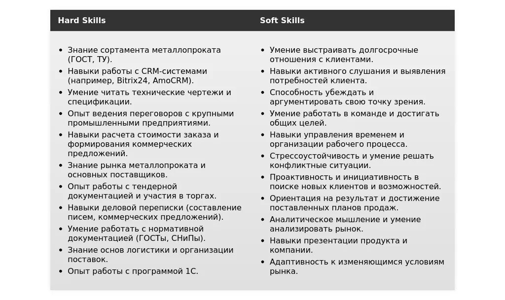 - Как описать специализацию: Укажите типы металлопроката, с которыми вы работали, и отрасли, в которых у вас есть опыт продаж.