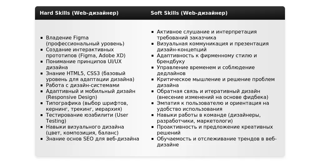 Анализ: В варианте "После" добавлены более конкретные навыки, соответствующие требованиям вакансии (UI/UX дизайн, HTML, CSS, Адаптивный дизайн).