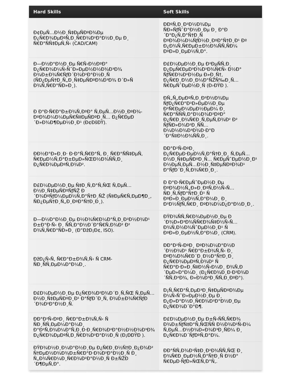 Адаптация раздела "Навыки" для технико-коммерческого инженера