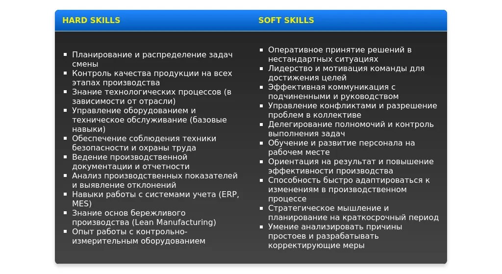 - Ключевые навыки для бригадира смены
