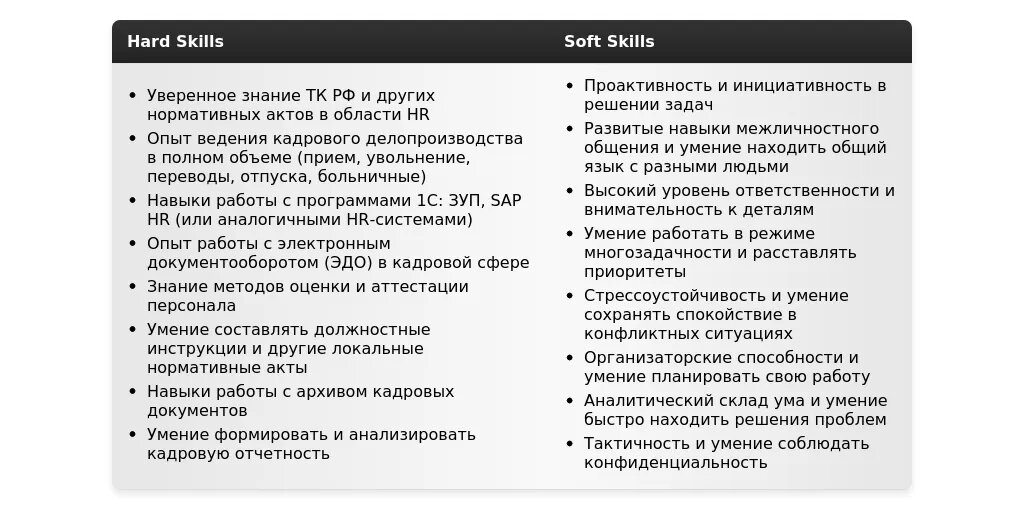 Например, в 2025 году актуально указывать опыт работы с современными HR-системами и знание последних изменений в трудовом законодательстве.