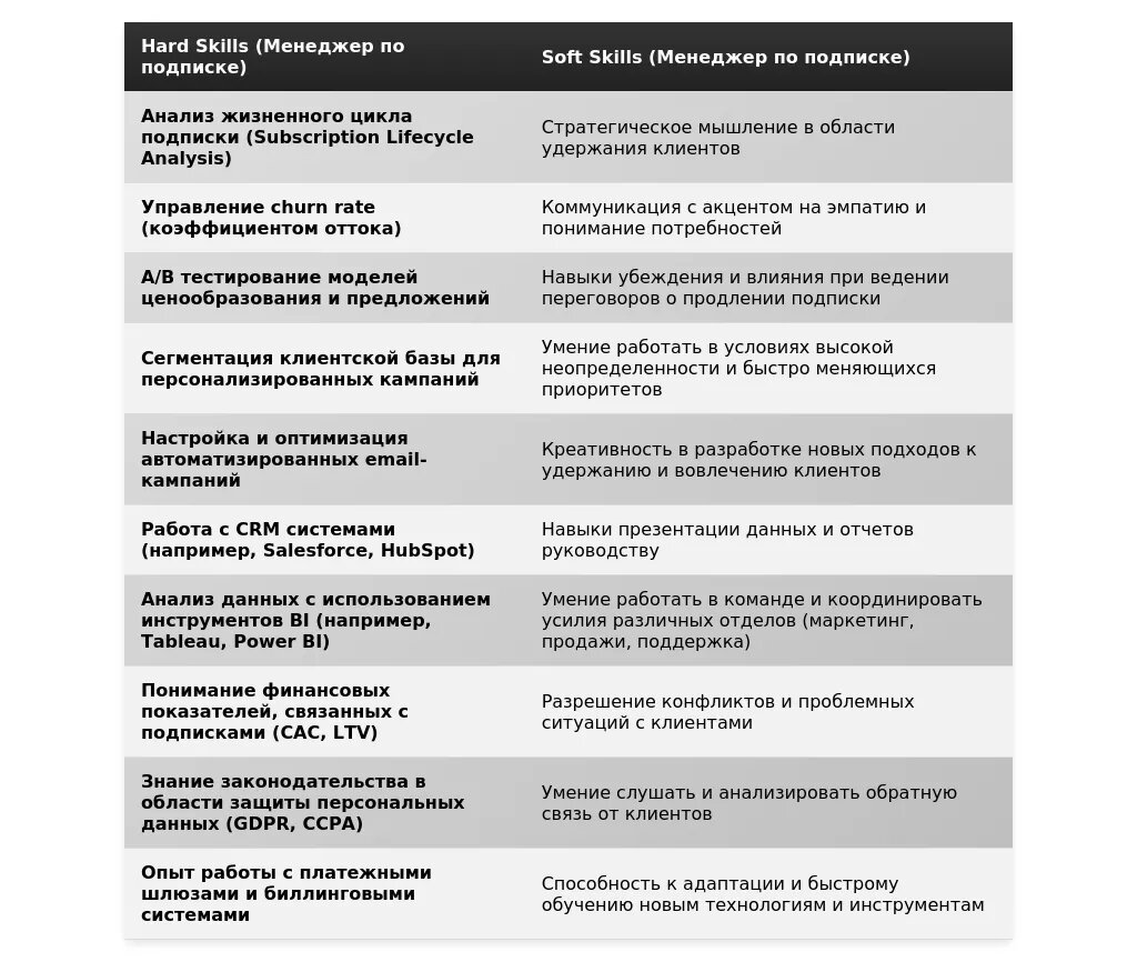 Ключевые навыки и компетенции, релевантные для позиции менеджера по подписке.