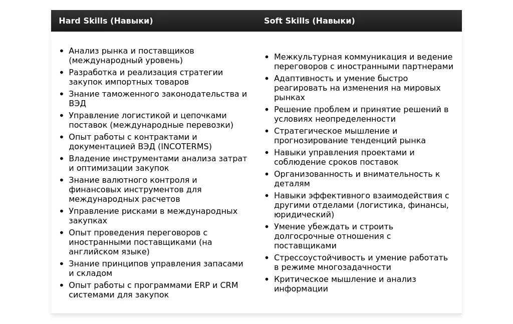Адаптация раздела "Навыки" для менеджера по закупкам импорт