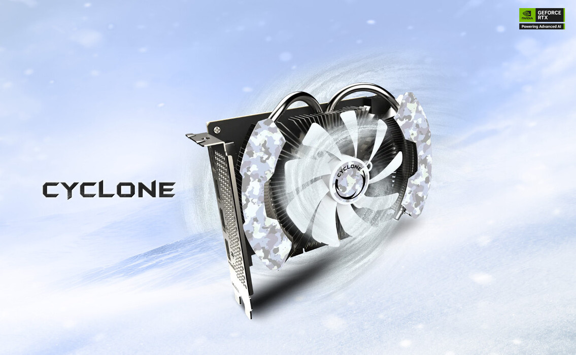 MSI на Computex 2025 показала GeForce RTX 5060 8G CYCLONE OC, которая сочетает ретро-стиль с современными технологиями. В отличие от компактной INSPIRE ITX с одним вентилятором, новая модель получила открытую систему охлаждения с алюминиевым радиатором, плотными ребрами и двумя тепловыми трубками.