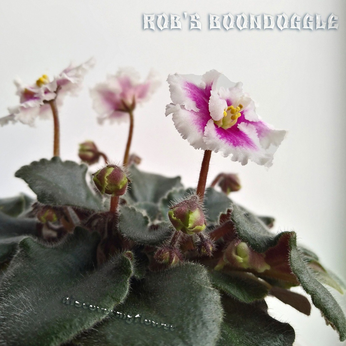 Rob's Boondoggle. Неожиданно осознала, что еще не рассказывала об этом замечательном сорте. А ведь он один из старожилов моей коллекции! Rob's Boondoggle — сорт не новый. Ему уже больше 30 лет. Он на отлично прошёл проверку временем и всё еще востребован (а не это ли главный показатель, что сорт действительно стоящий?). 🌸 Цветы полумахровые белые звезды с пурпурным глазком, который расходится лучиками от центра к краям лепестка. Количество пурпурного цвета может слегка меняться в зависимости от условий. Лепестки имеют симпатичный гофрированный край. 🍃 Листья очень тёмные, чёрно-зеленые, с красноватой изнанкой, слегка волнистые. Отличные цветоносы оптимальной крепости и длины. 🍀 Полумини розетка довольно компактная и приятная по форме. Слоником у меня никогда не вырастала. #растения #фиалки #сенполии #plantblogger #цветовод #обзоры #цветы #геснериевые
