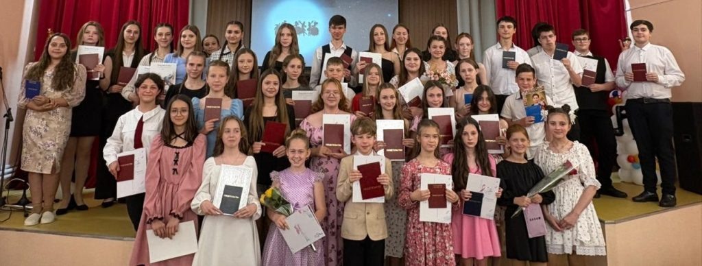 76 обучающихся на музыкальном, хореографическом и отделении изобразительного искусства получили свидетельства о начальном профессиональном образовании. Из-за большого количества выпускников пришлось провести два вечера.