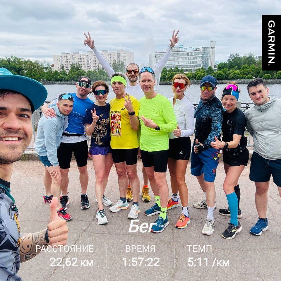 1. Утренняя тренировка 08:08 22.62км Темп 5'11+ купание в Финском заливе и оттуда босиком 2км до дома и 20 отжиманий. Давно не был у Выборгских любителей бега🤗