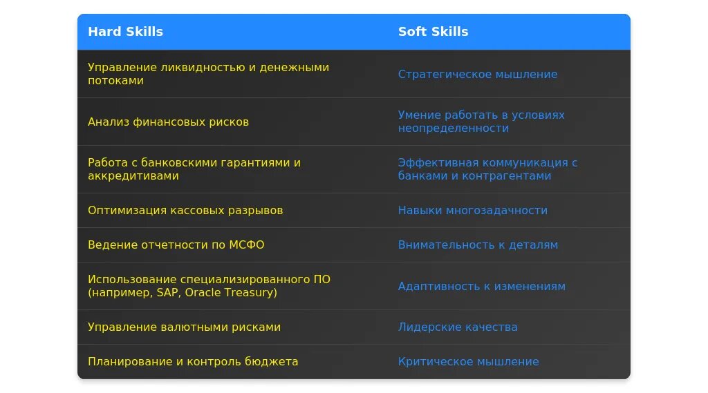 Анализ требований вакансии для специалиста отдела казначейства