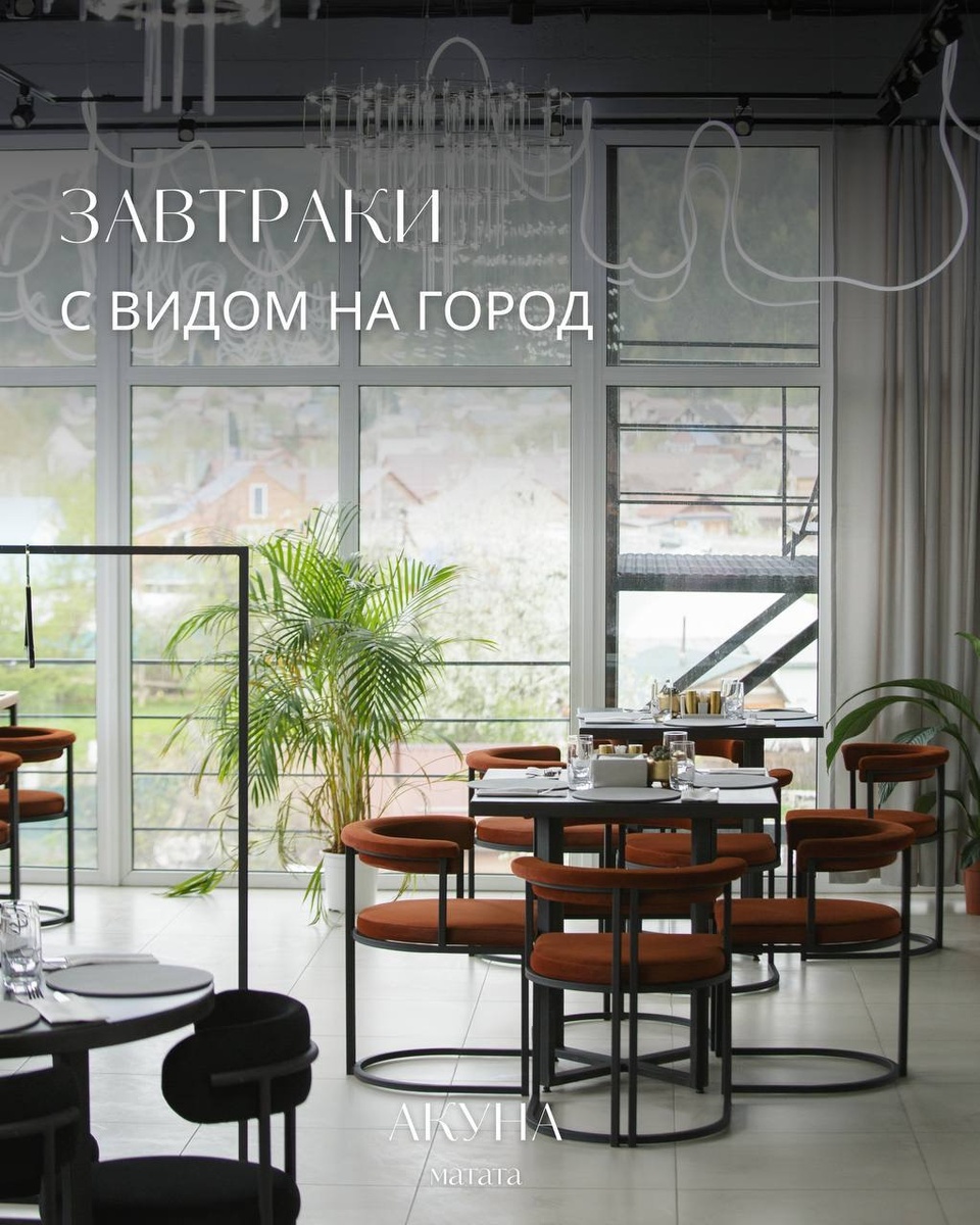 «Акуна Матата» в Горно-Алтайске – новый панорамный ресторан, стильное и уютное место, где можно вкусно поесть с видом на горы и город. Классическое меню, красивая подача, комфортная и расслабляющая атмосфера. Приглашаем на: – завтраки с 08:00; – деловые обеды по будням с 12:00 до 16:00; – ужины; – вечерние коктейли в баре – до 00:00. Найдите на карте вкусов свою точку притяжения. Ждем вас по адресу: г. Горно-Алтайск, ул. Социалистическая, 56. Телефон для бронирования столика 89625821011. Больше информации о нас: Telegram https://t.me/akynamatata04 ВКонтакте https://vk.com/akuna_matata_restaurant Реклама. ИП Лукьянова А.А. ИНН: 041105813307. Erid 2W5zFGZEPVi