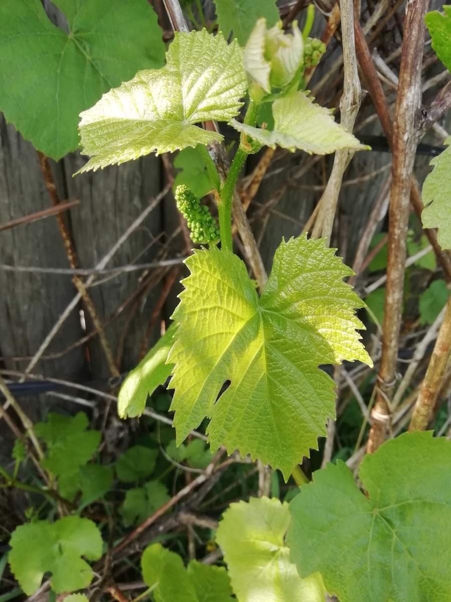 Вы когда ни будь видели как выглядит молодой виноград. Да как видите ягоды после завязи формируются изначально веточкой, причем растет как в данном случае либо вверх либо в бок. Затем в процессе созревания и увеличения в размере виноград начнет свисать с ветки. Как видите изначально веточка достаточно толстая и зелёная. После того как ягоды созреют она приобретёт коричневый цвет и станет деревяшкой, а не ростком, и ягоды хорошенько будут свешиваться с ветки.