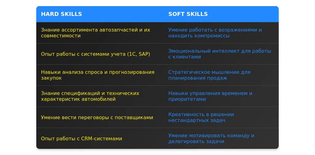 Анализ требований вакансии для профессии "менеджер отдела автозапчастей"