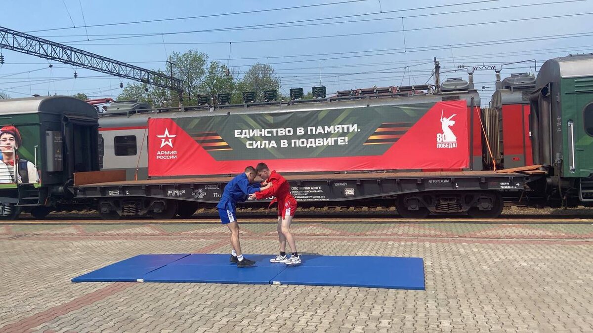 🚂✨ Встреча сильнейших: Самбисты «Выбора сильных» приветствуют Агитпоезд Минобороны