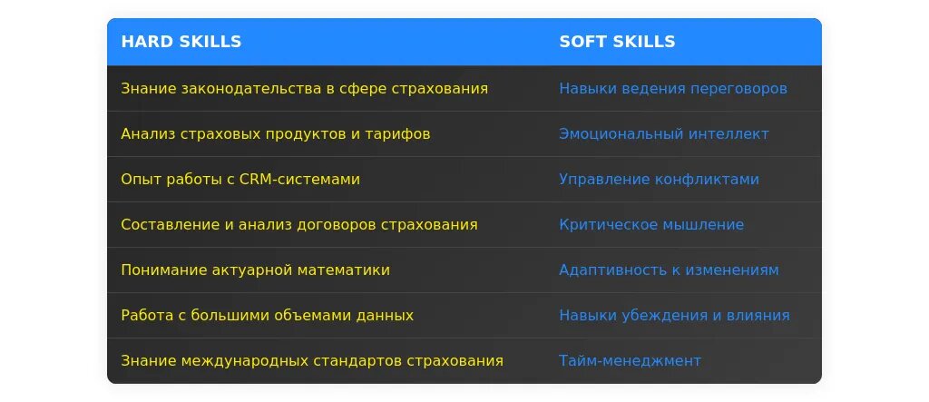 - Делайте акцент на базовых навыках, таких как знание страхового законодательства и CRM-систем.