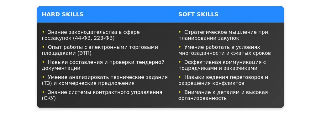 - Ключевые навыки, связанные с тендерами.