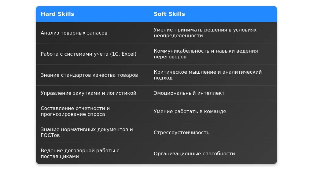 Ключевые фразы: "управление товарными запасами", "оптимизация складских процессов", "ведение переговоров с поставщиками".