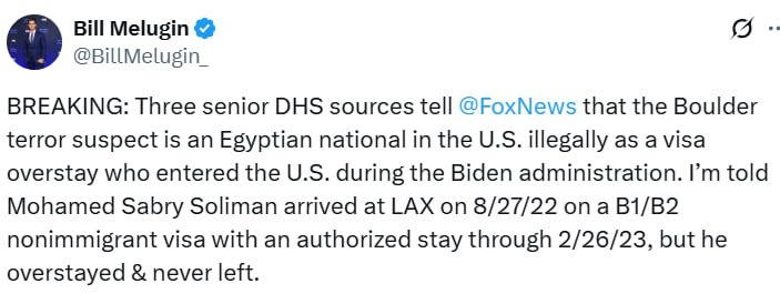 В ответ на пост Colorado terror suspect an illegal let in by Biden — senior DHS sources