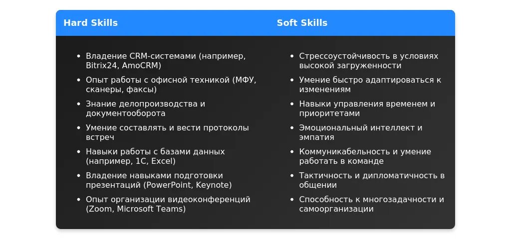 Личные качества (soft skills) играют важную роль в работе секретаря, так как они помогают эффективно взаимодействовать с коллегами и клиентами.