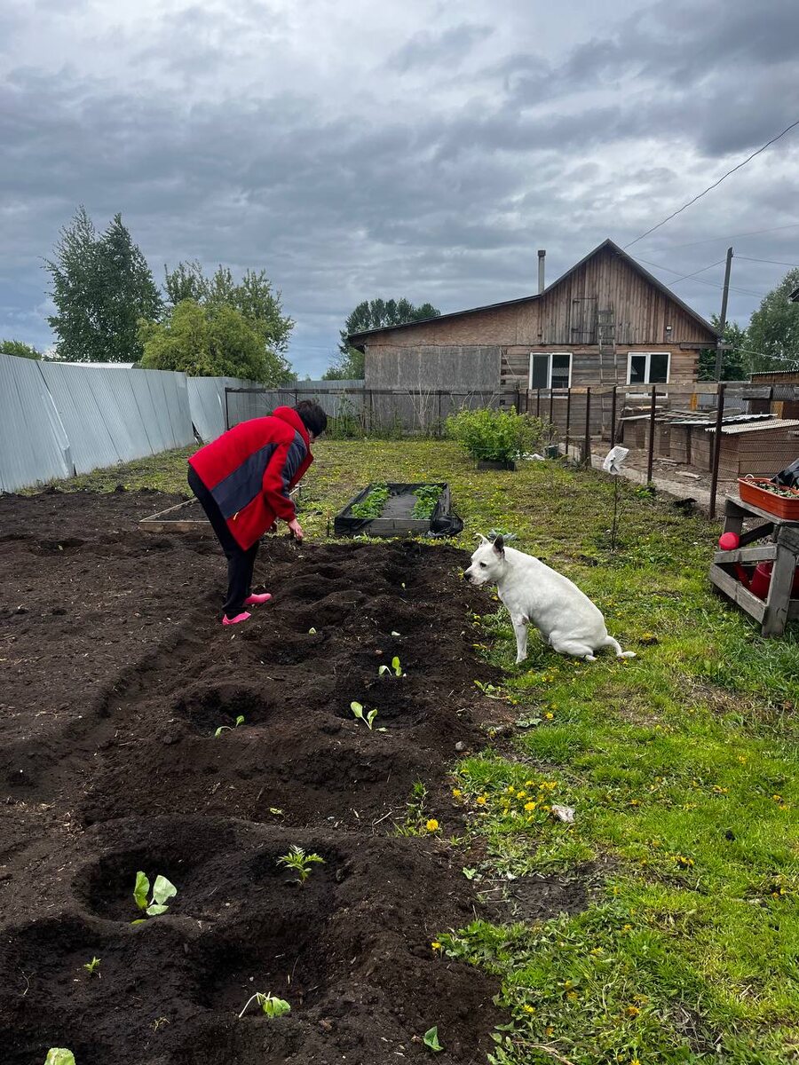 Все выходные мы садились огород под чутким руководством нашего Сени)