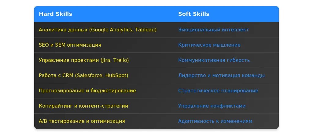 - Ключевые навыки, связанные с управлением маркетинговыми проектами.