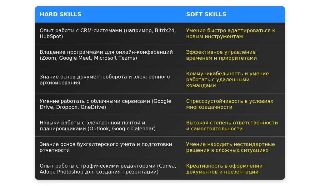 - Укажите продвинутые навыки (например, макросы в Excel, интеграция CRM-систем).