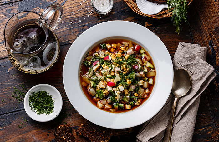 - Квас выбирайте внимательно: сладкий магазинный квас испортит вкус. Лучше взять фермерский, домашний или квасной концентрат и развести его по вкусу.