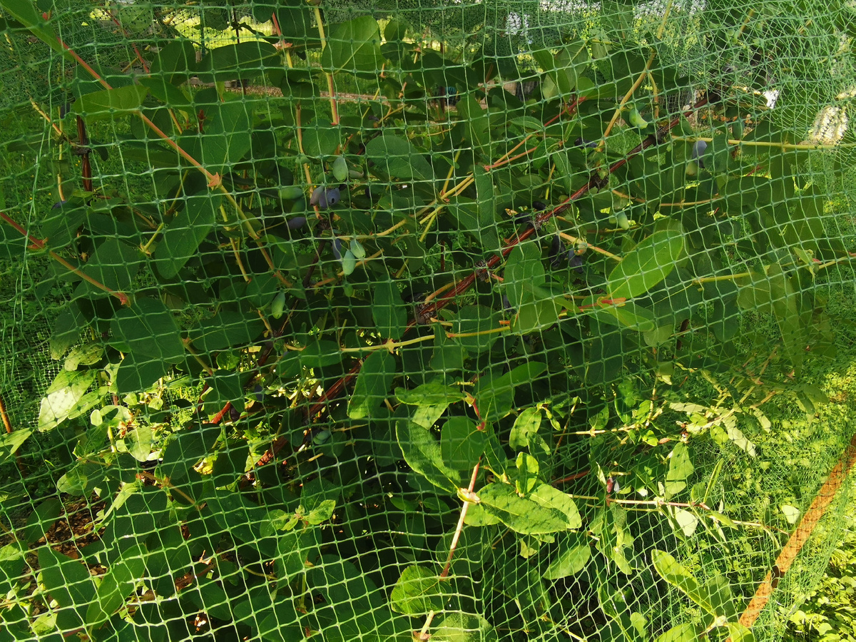 Не успела я вчера всерьез задуматься нужно ли жимолость прикрыть, как она стремительно посинела. А уже за завтраком обнаружилась дружная компания рябинников, насевших на кусты. Вот поганки! Причем не столько съели, сколько посбивали ягоды, нужно срочно закрывать, иначе ягод не попробуем Хорошо, что в запасе была сетка, которую я в прошлые годы использовала на клубнику. Но в итоге на клубнику тогда дрозды не претендовали абсолютно. Пока намотали сетку на скорую руку: Интересно к клубнике в этом году аппетит проснется? Поделитесь, пожалуйста, кто как спасает урожай? Клубнику сеткой закрыть по дугам вообще не проблема, а вот кусты уже сложнее, особенно когда подрастут Есть ли долгоиграющие пугалки или ко всему они привыкают?
