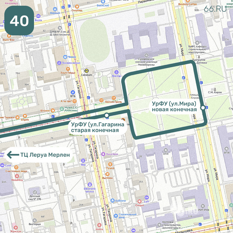 Теперь по новым маршрутам ездят автобусы № 40, 43, 83, 67. Его продлят от остановки на Ленина — Гагарина до остановки на ул. Мира перед главным входом в УрФУ. № 43 меняется местами с маршрутом № 83 на ул. Токарей — ул. Заводской. Теперь № 43 будет ездить прямо по ул. Токарей в обе стороны, а не только на проспект Седова. А № 83 будет ездить по ул. Заводской на пути к ЖК «Светлый». В сторону Сортировки трасса останется прежней. Автобус будет в обе стороны ездить по ул. Алтайской — ул. Рощинской с ост. «Областная клиника неврозов» (обратно «Сосновый Бор»), «Якутская», «Патриотов», а далее — по привычному маршруту. У него отменили крюк при проезде — по ул. Белякова до ост. «Семь ключей». Кроме этого, его перенаправили с ул. Технической на ул. Таватуйскую (ул. Билимбаевская — ул. Таватуйская — ул. Бебеля). На этом участке ввели ост. «Маневровая», «Сортировочная», «Надеждинская», «Таватуйская». Остановка «Таганский ряд» в сторону ДМБ № 9 теперь на съезде с развязки. На прошлой неделе по нов