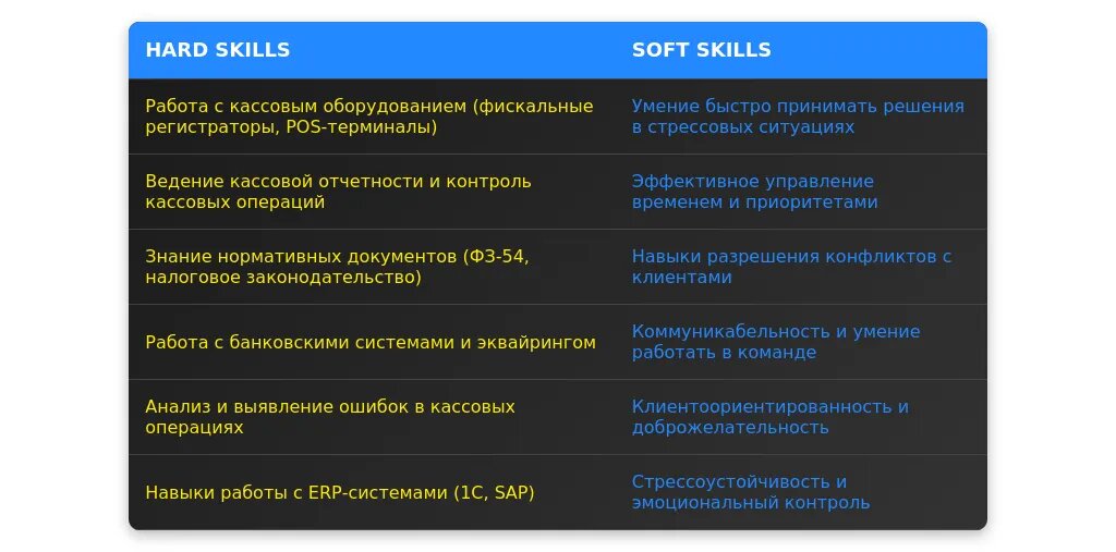 Анализ требований вакансии для ведущего кассира-операциониста