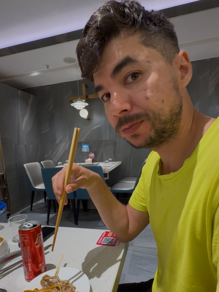Как мы в «хотпотошную» ходили🤣 Мысль отужинать в кафешке в формате Hot pot возникла ещё на этапе планирования путешествия по Китаю. В Пекине было не до этого. В Сиане рядом с отелем было одно подобное заведение, но там подавали только мясо и потроха. А я такое не ем. В итоге, уже в Чэнду Дима всерьёз озаботился этим вопросом и даже подключил искусственный интеллект для решения этой задачи! И не абы какой, а китайский. Называется DeepSeek. Вот он-то нам и посоветовал несколько заведений, где подают именно морепродукты. Выбрали Haidilao (海底捞), потому что рядом с нашим отелем. Находится он в торговом центре. И это не одно заведение, а целая сеть. Мы пришли часов в 7 вечера, народу там — не протолкнуться. По итогу, нам нашли свободный стол, помогли оформить заказ, показывая изображения и текст на инглише. Обратите внимание, что там предлагают аж 4 варианта бульона, в которых вы потом самостоятельно будете варить морепродукты, грибы и тофу. Мы выбрали томатный, креветочный и какой-то По