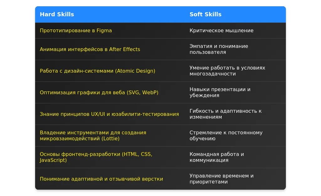 На что делать акцент: Навыки работы с инструментами (Figma, Adobe XD), базовые знания HTML/CSS, готовность учиться.