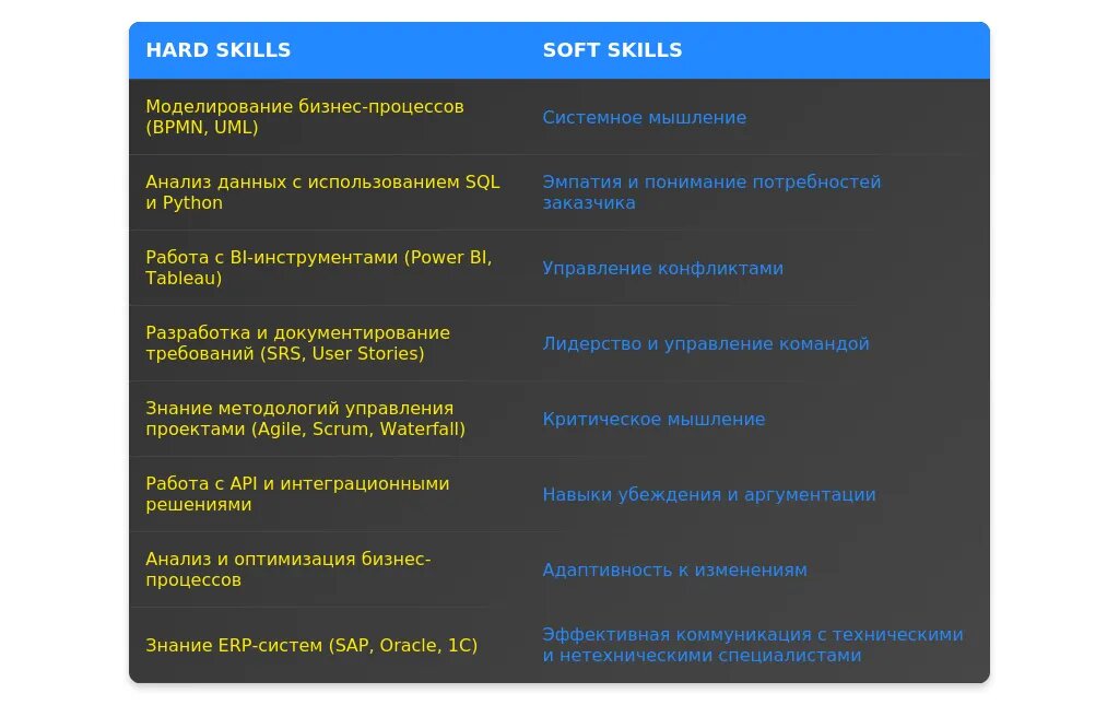 Анализ требований вакансии для профессии "ведущий бизнес-аналитик"