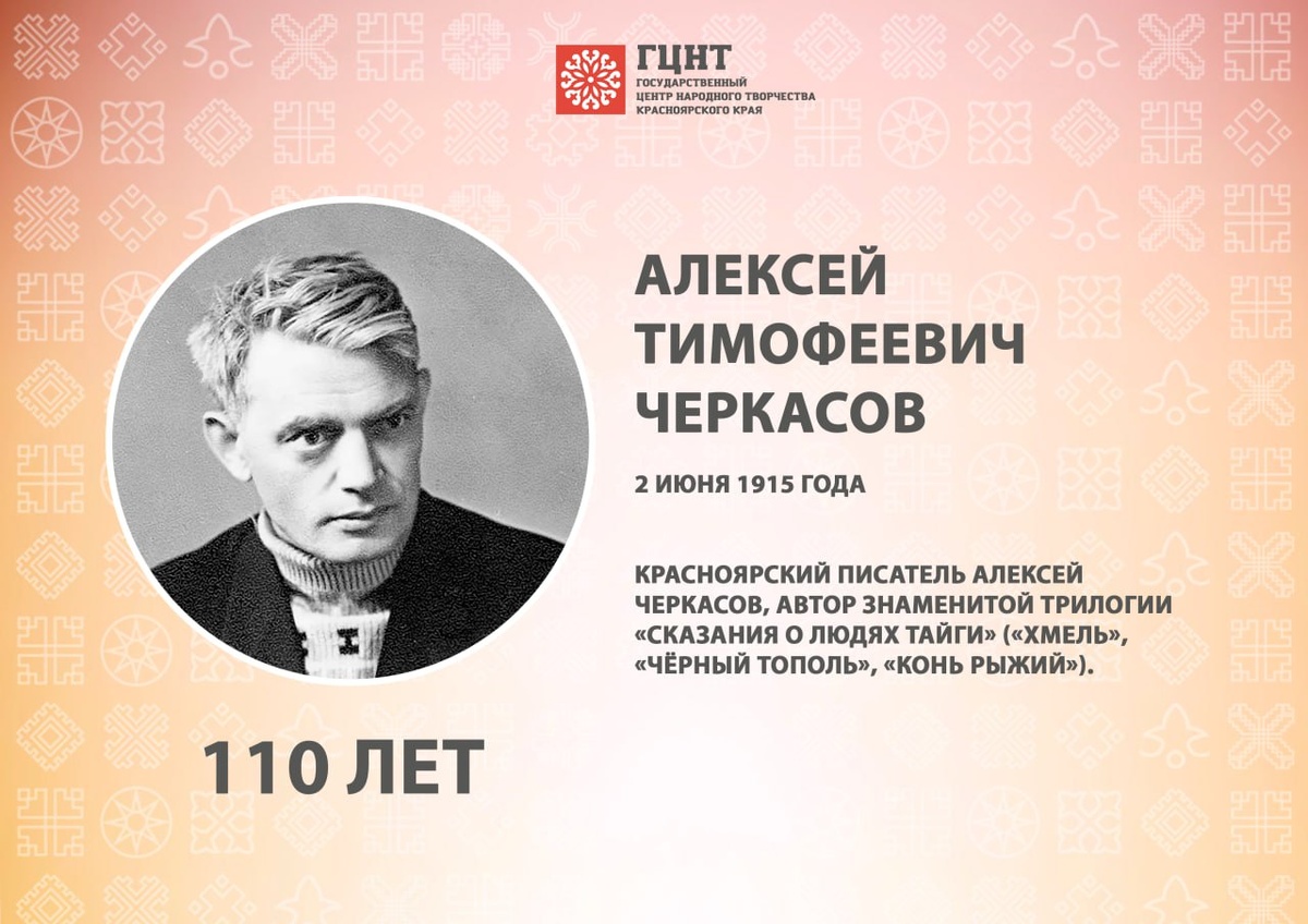 2 июня исполняется 110 лет со дня рождения красноярского писателя Алексея Черкасова, автора знаменитой трилогии «Сказания о людях тайги